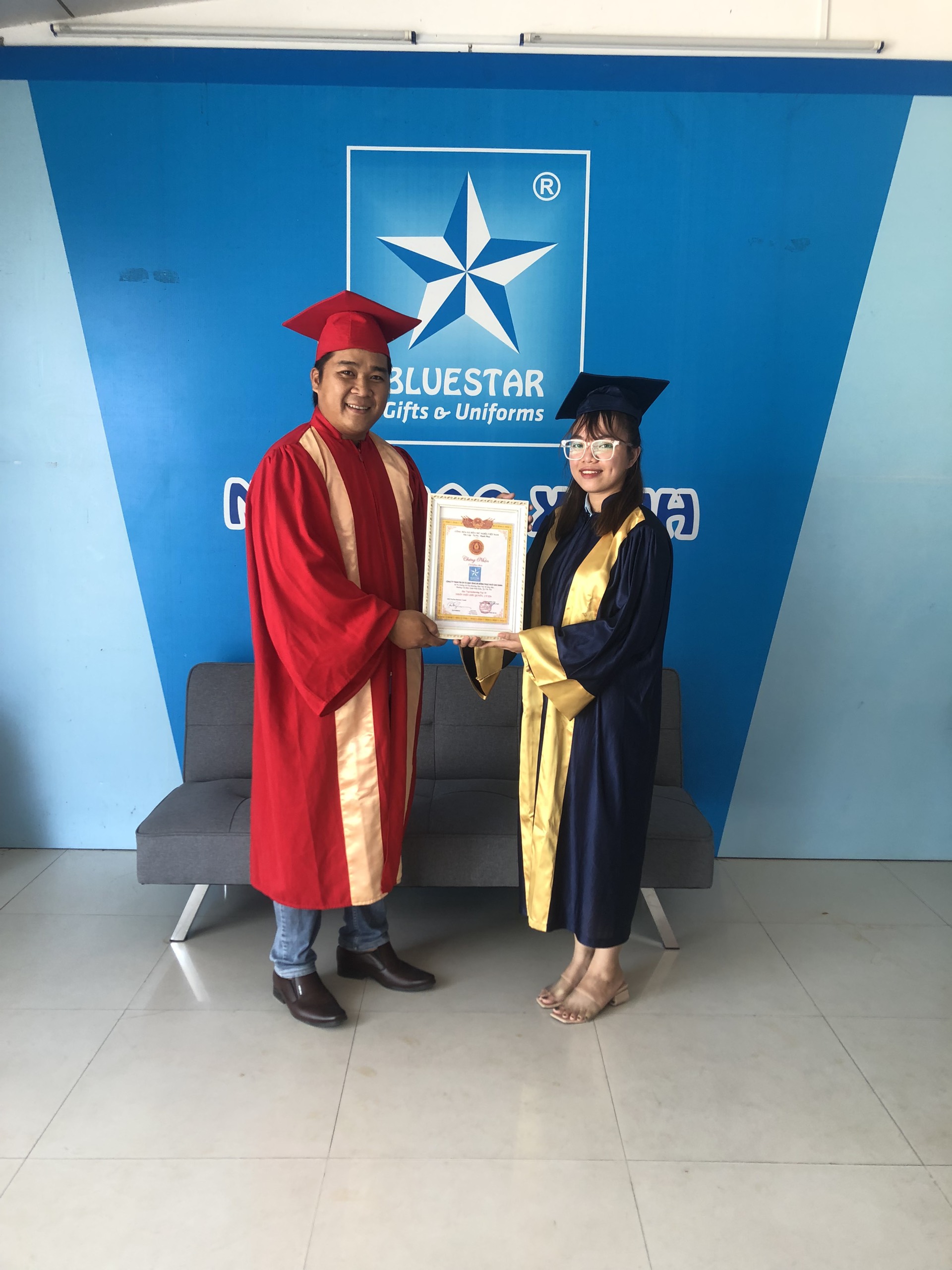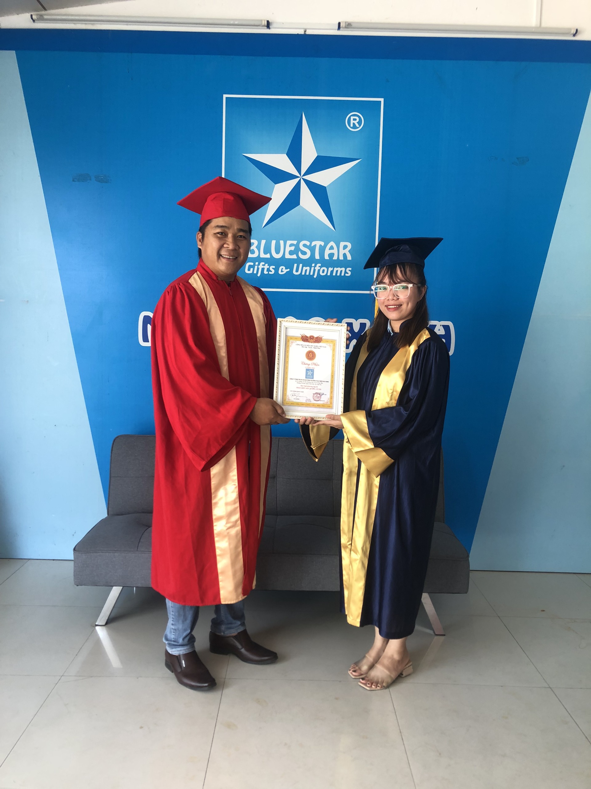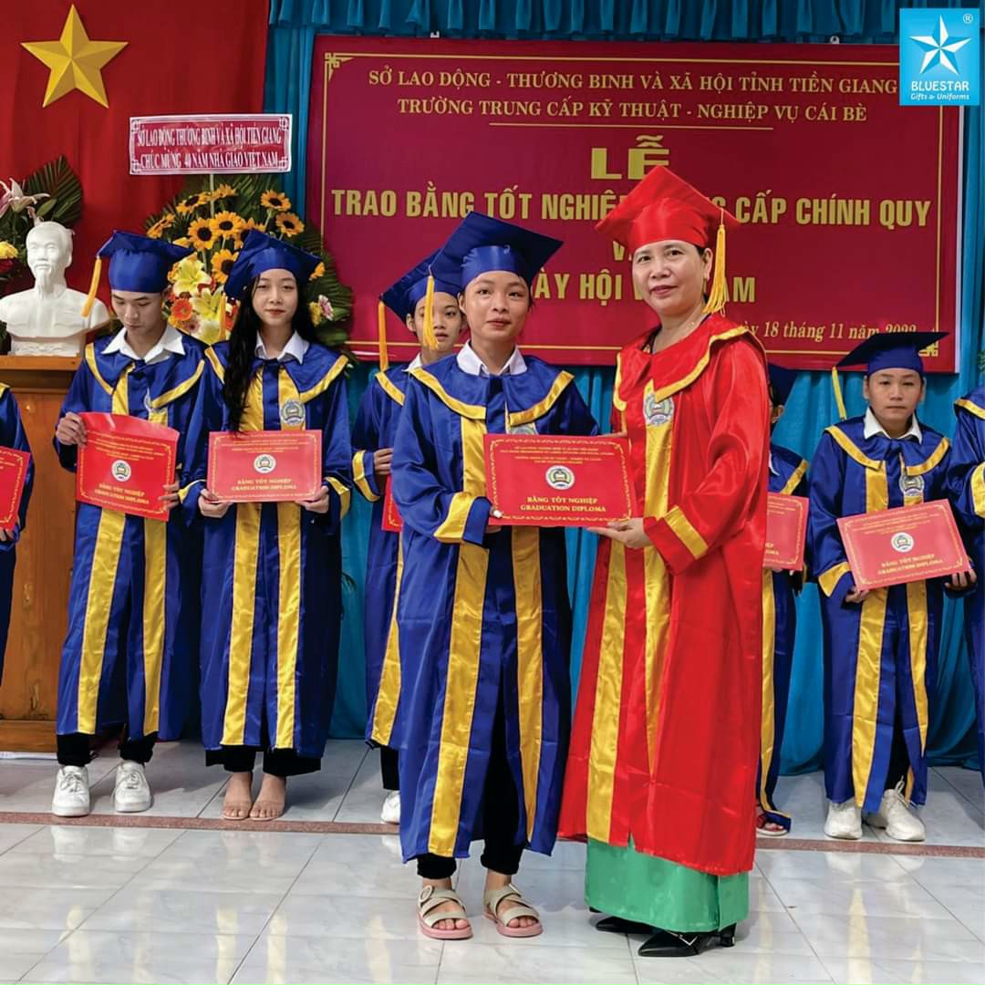 Với thế mạnh về chất lượng cũng như uy tín trên thị trường, Ngôi Sao Xanh tự tin khẳng định sẽ mang đến cho Quý khách hàng những sản phẩm áo Đoàn - lễ phục tốt nghiệp:1. Chất lượng tốt nhất với nguyên liệu vải và phụ liệu cao cấp